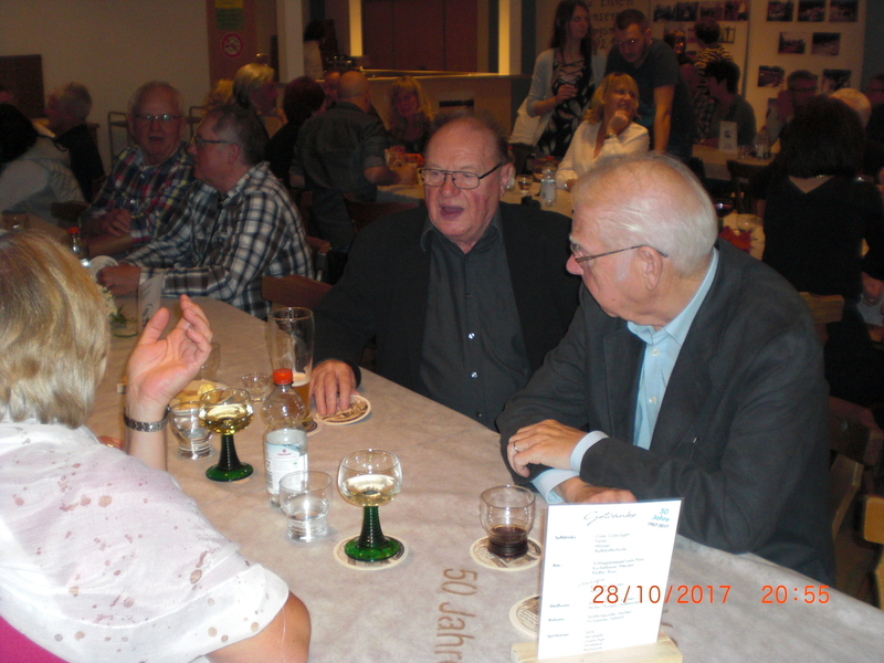 Nach den Ansprachen war für das leibliche Wohl vorzüglich gesorgt und die Gäste konnten sich anhand eines Zeitstrahls, bestehend aus Wänden mit Impressionen aus den vergangenen 50 Jahren, Anekdoten austauschen, alte Erinnerungen auffrischen und an die gute alte Zeit erinnern. Musikalisch wurde die Veranstaltung untermalt durch Herrn Klaus Lutz.
